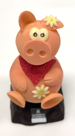 En tant que charcutiers, nous avons forcément craqué pour le cochon en chocolat confectionné par l’Artisan Chocolatier Yvonnick Le Maux (Champion de France Chocolatier et Vice-Champion du Monde Chocolatier), également installé à Pontivy.